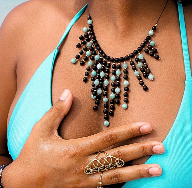 Vente de bijoux et artisanat local.